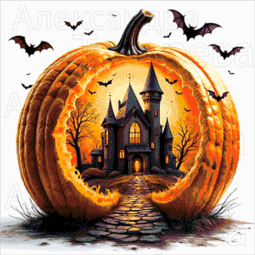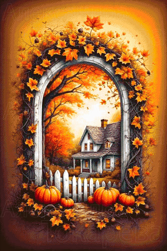 Stickpackung mit Perlen "Haus mit Kürbissen"