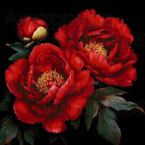 Stickpackung mit Perlen "Rote Pfingstrosen"