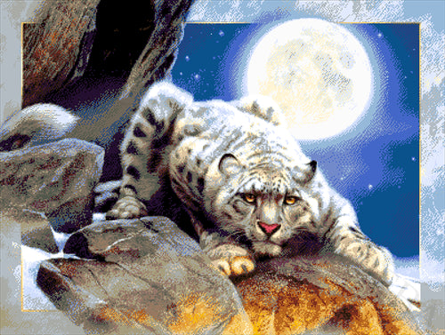 Stickpackung mit Perlen "Leopard unter dem Mond"