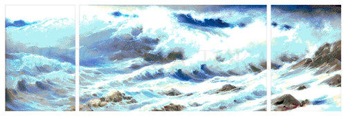 Stickpackung mit Perlen "rasendes Meer" (Triptychon)
