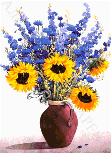 Stickpackung mit Perlen "Vase mit Sonnenblumen"