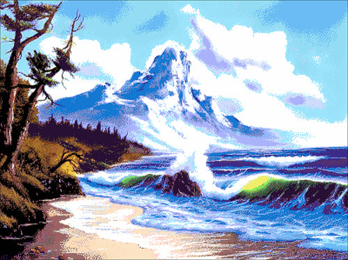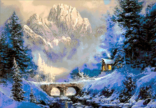 Stickpackung mit Perlen "Sonnenuntergang in den Bergen"