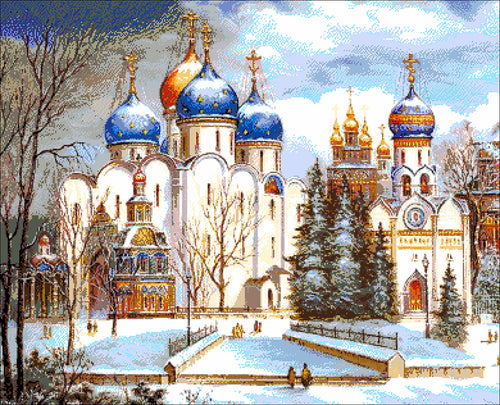 Stickpackung mit Perlen "Das Dreifaltigkeitskloster von Sergijew Possad"