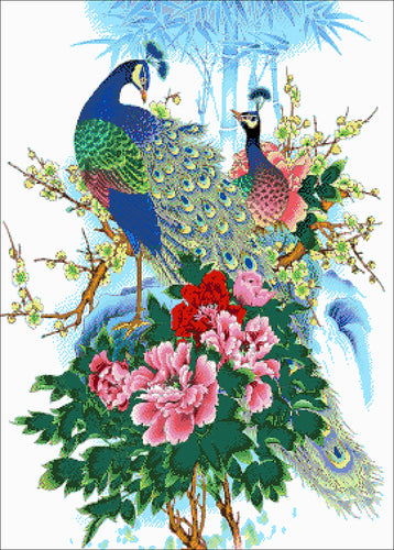 Stickpackung mit Perlen "Ein Paar Pfaue"