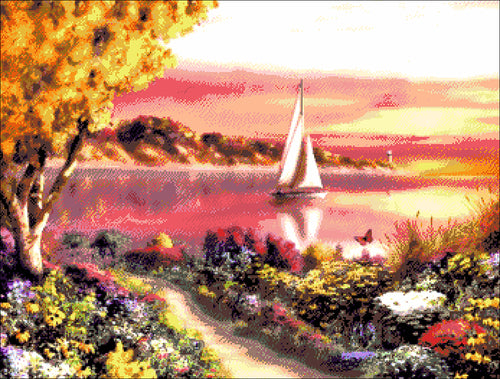 Stickpackung mit Perlen "Segeln in den Sonnenuntergang"