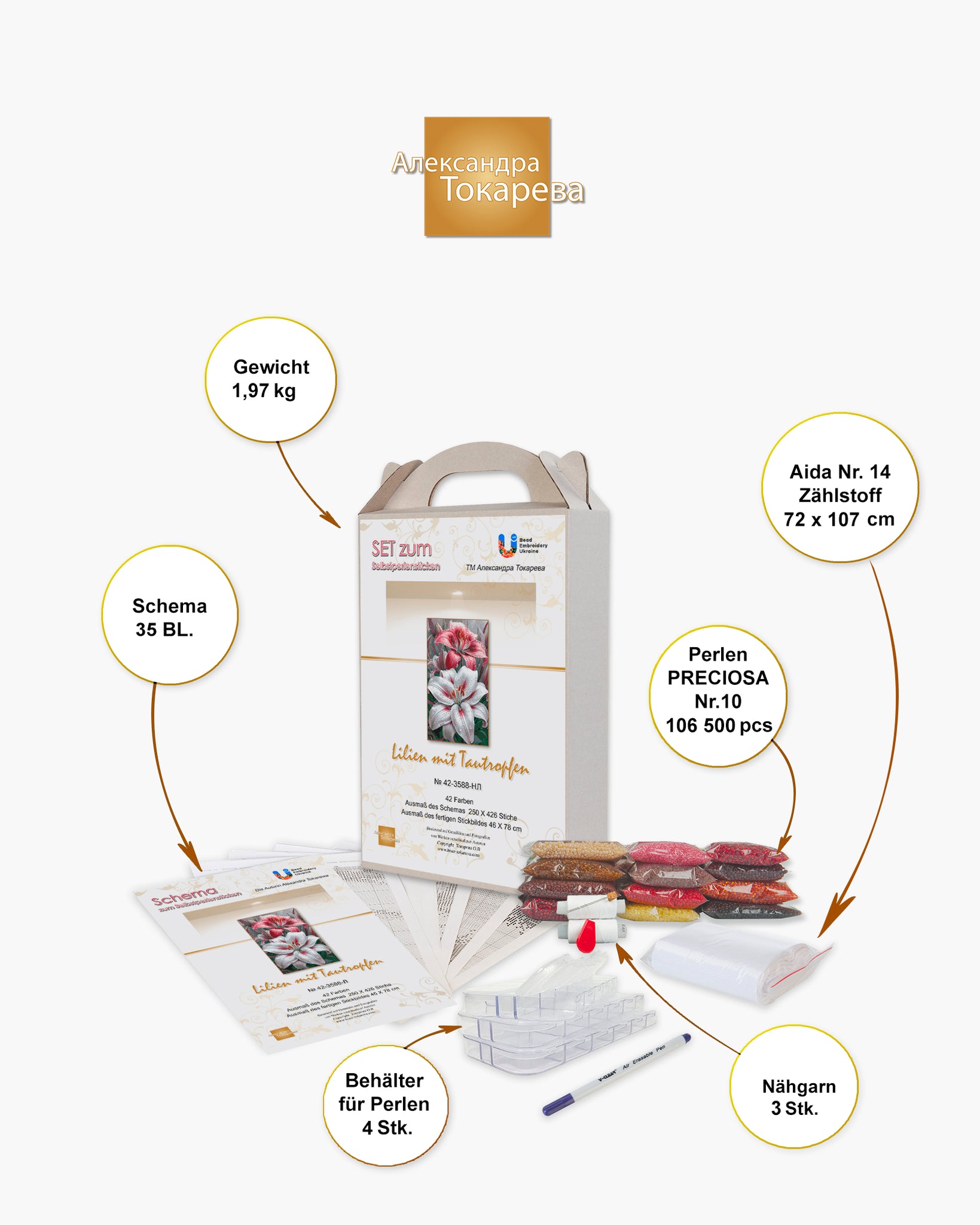 - Legende mit Perlennummern, Menge, Abbildung, Beschreibung