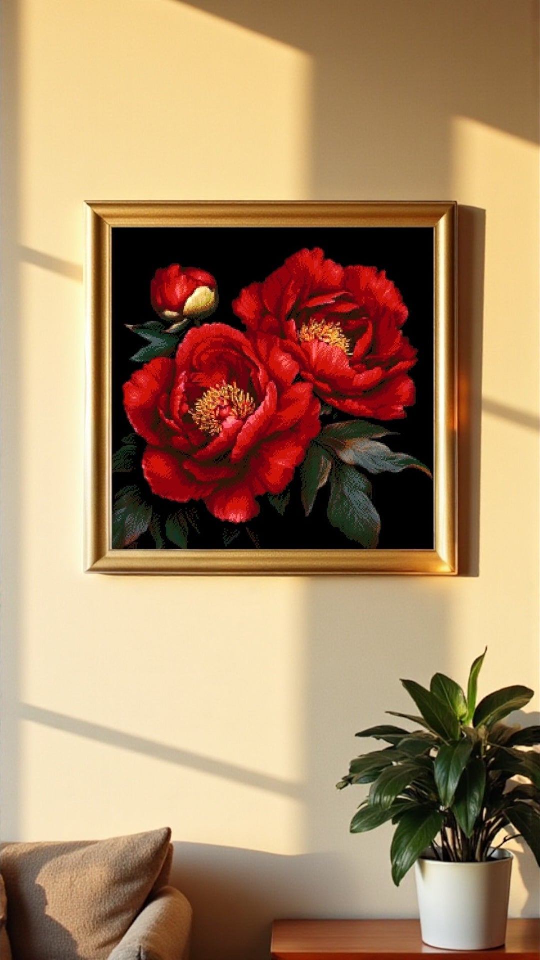 Die Größe der Stickerei beträgt: 46 x 46 сm